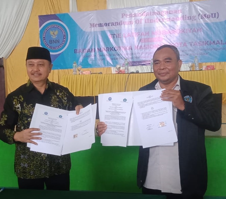 Sebagai perwujudan kampus merdeka STIE Latifah Mubarokiyah menjalin kerjasama dengan BNN Kota Tasikmalaya guna perkuat sinergitas kampus bersih narkotika (BERSINAR). Kerjasama tersebut di awali dengan penandatangan Memorandum of Understanding (MoU) antara STIE Latifah Mubarokiyah dengan BNN Kota Tasikmalaya pada tanggal 19 Oktober 2022 yang bertempat di Gedung Serba Guna Sukriya Bakti Latifah Mubarokiyah Pondok Pesantren Suryalaya di lanjutkan dengan Studium General tentang Pencegahan dan Pemberantasan Penyalahgunaan Dan Peredaran Gelap Narkoba (P4GN).
